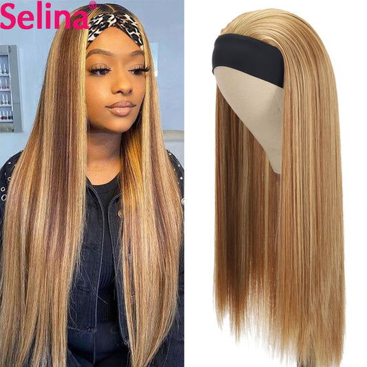 Synthetic Headband Wig Highlight Wig P27/33 Mixed Ombre Honey Blonde Straight Wigs Daily Party Cosplay Wig Heat Resistant Fiber